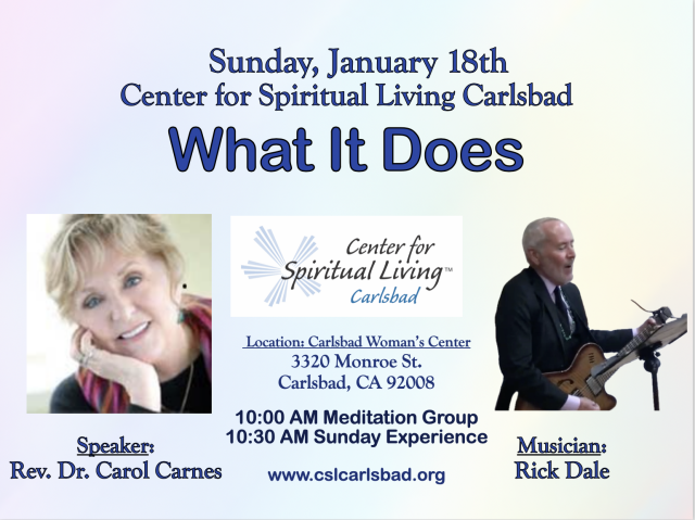 The Center for Spiritual Living Carlsbad provides the spiritual tools, support and practices to transform our lives and make the world a better place. We believe that as we change our thinking, we can change our lives.